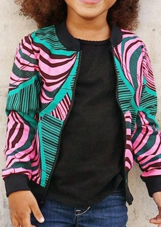 The Zuri Ankara African Print Bomber Jacket in Pink