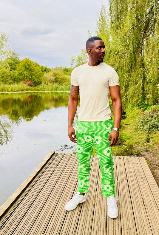The Zembe Men Ankara African Print Slim Fit Trousers Panhs in Green by Eldimaa Fashion